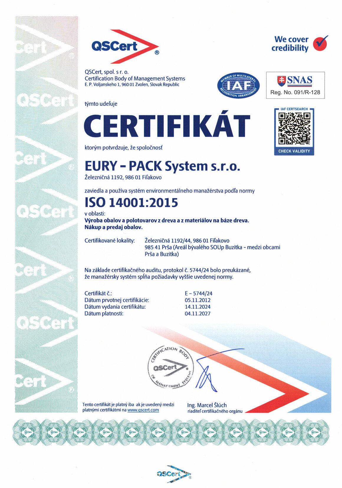- STN EN ISO 14001 systém environmentálneho manažérstva