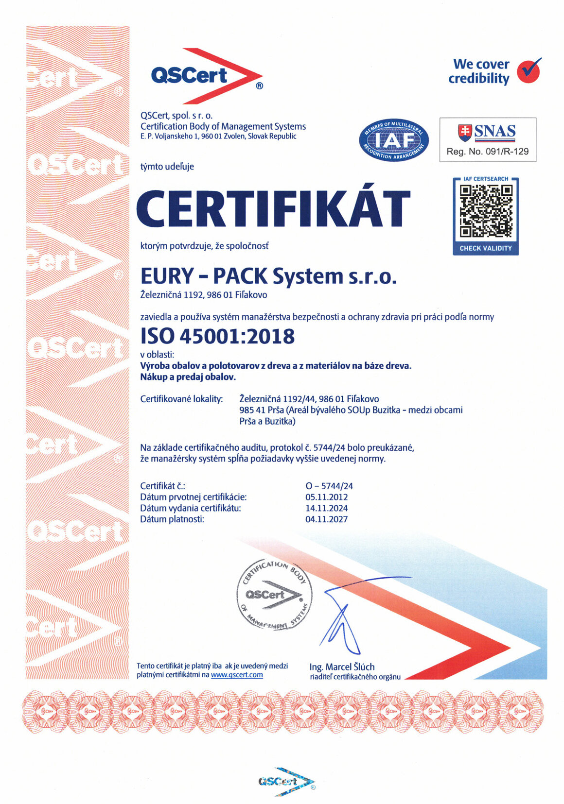 - STN EN ISO 45001 systém manažérstva bezpečnosti a ochrany zdravia pri práci
