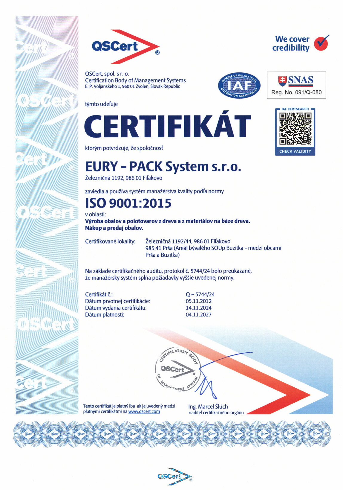 V súlade s potrebou kvalitatívne rásť s našimi odberateľmi sme koncom roka 2012 implementovali integrovaný manažérsky systém ...