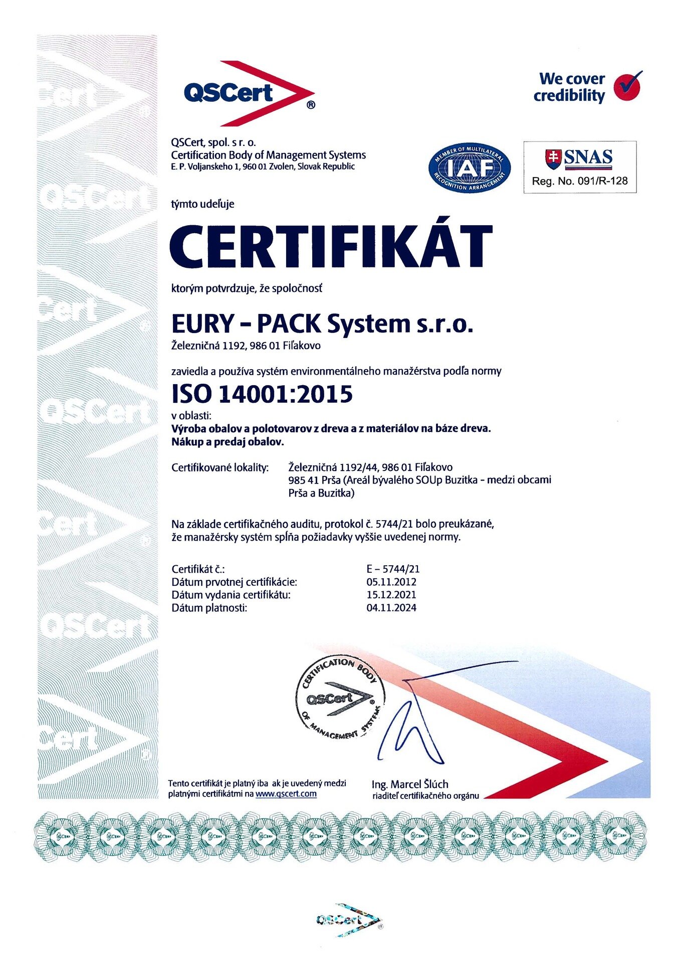 - STN EN ISO 14001 systém environmentálneho manažérstva